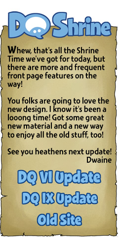 Pre-Release Dragon Quest VI Update Pre-Release Dragon Quest IX Update Visit the old site and its sad, stale design. I'm so sorry for unleashing this blight upon the world.